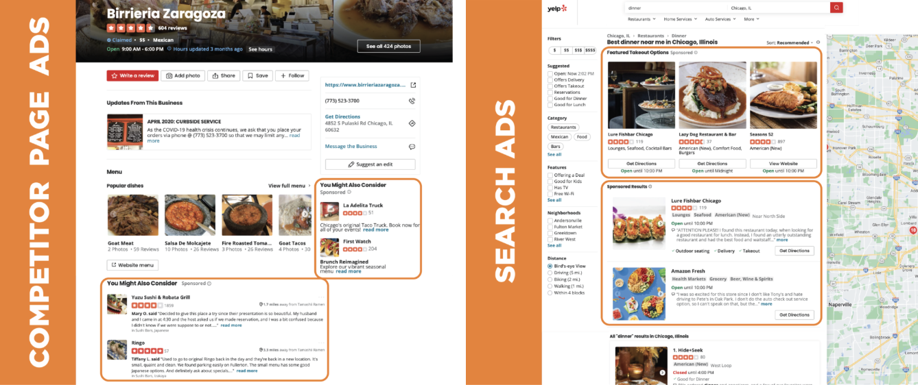 Yelp Ads place your business at the top of relevant search results and on competitor pages, giving you exposure you wouldn’t get organically—especially helpful in competitive categories.